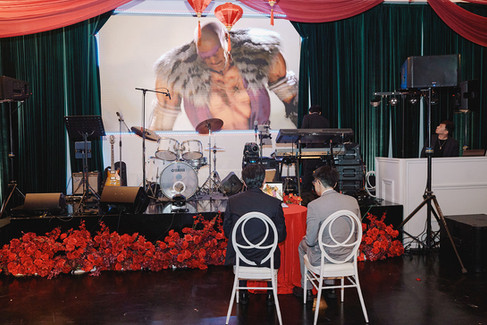 To reflect their love of gaming, the couple designed a series of interactive activity stations for their guests, including casino tables, a live Street Fighter match, and a playful betting experience. With a lively photo booth and immersive entertainment throughout the evening, every guest felt part of the celebration.